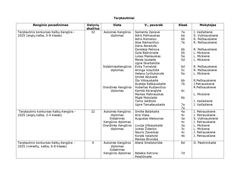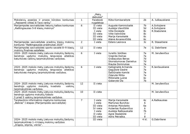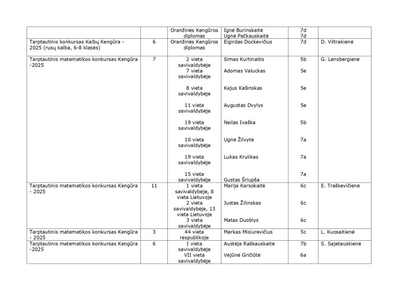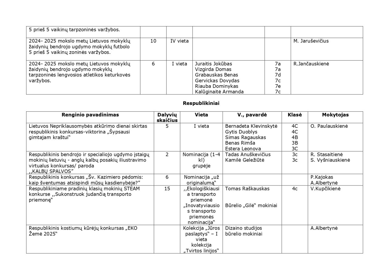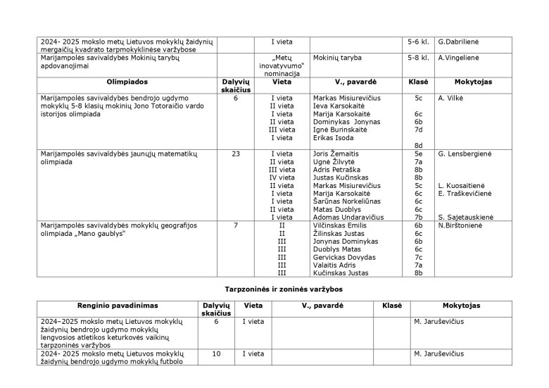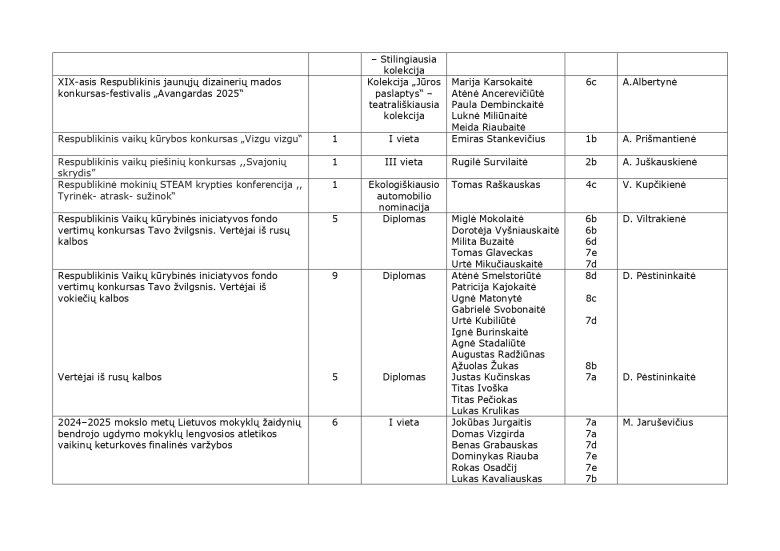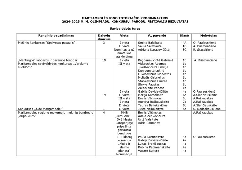 2024-2025 m. m. olimpiadų, konkursų, parodų, festivalių rezultatai